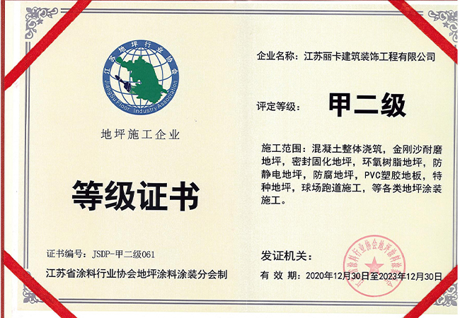 江蘇麗卡建筑裝飾工程有限公司是一家專業(yè)化、多元化公司;公司致力于工業(yè)地坪材料工程和施工場地的開發(fā)設(shè)計、銷售施工及保養(yǎng)維護。